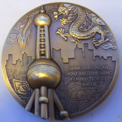 近来铜章市场人气低迷,打开有关大铜章网站,尽是一些熟悉的“老面孔”。各个网站的论坛也是人迹稀少,偶尔发帖也应者寥寥。这与新品不断的钱币市场相比,简直是冰火两重天。就在这大铜章进入漫漫冬眠之际,笔者有幸得到一枚《上海公安收藏鉴赏分会成立纪念》大铜章,此章的出现犹如“万马齐喑”的铜章界,发出一嘶长呜使人为之一震。