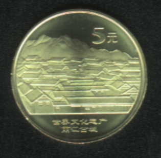 美丽的丽江古城,有巍峨的玉龙雪山,有清澈的小桥流水,那里的房屋弥漫着沉旧的古意,那里的女孩是丛林中最美丽的精灵,用她们那灵异的歌声渲染着神秘。迷雾中,丽江古城依旧带着她那神秘的面纱,而我们不经意间走进了它,怕惊醒她,又不由自主地想要靠近,迷失或者是回归?让疲惫的心灵在那温暖的地方沉睡。我的身边,是那清澈的小桥流水,是那沉旧的房屋,是丽江那犹如母亲怀抱般温暖的大地。或者,这就是丽江古城纪念币为我们用金属雕刻工艺所描绘的一副心灵图卷。丽江古城普通纪念币背面主景图案为随地势高低而就、错落有致的丽江古城,其背景为玉龙雪山。内缘右上方刊“5元”字样,内缘下方刊“世界文化遗产丽江古城”字样。从画面构图看,整体饱满,以古城为前景,雪山为后景,层次分明,错落有致,虚实结合。从观赏来看,从近景推及远景,把古城的神秘迷蒙和雪山的清澈旷达有机地组合在一个画面之中,丰富了画面的纵深和内涵,留给我们无限的遐想和回味,也让我们在观赏的过程中,洗涤了早已被尘事所遮蔽的心灵。