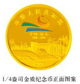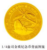 (一)1/4盎司金质纪念币为精制币,圆形,含纯金1/4盎司,直径22毫米,面额100元,成色99.9%,最大发行量10000枚。