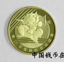 第29届奥林匹克运动会——击剑普通纪念币背面图案为北京2008年奥林匹克运动会吉祥物福娃击剑运动造型。内缘右上方刊面额“1元”字样,内缘下方刊“第29届奥林匹克运动会”字样。