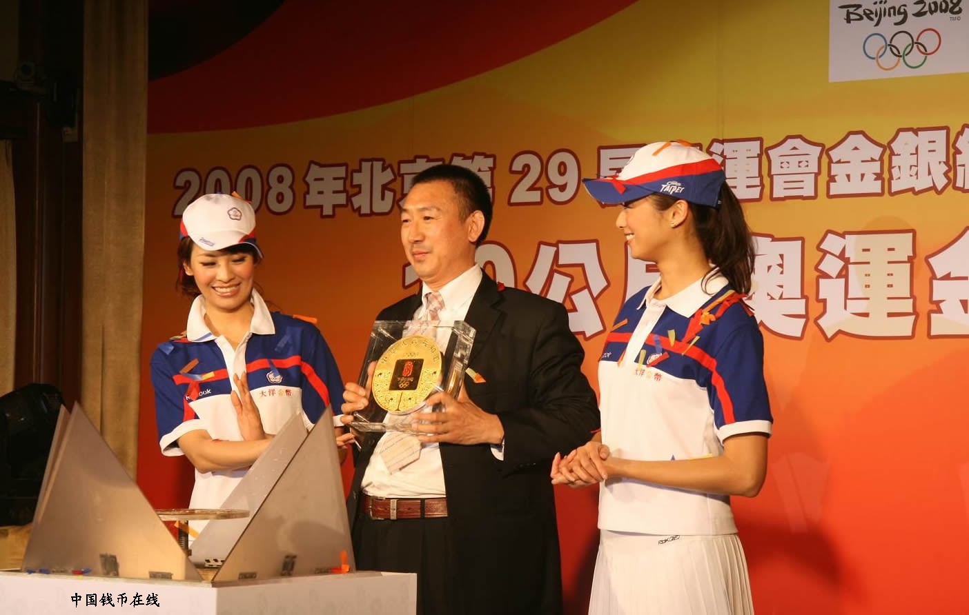 本次记者会由中华奥委会主席蔡辰威先生与台湾大洋金银币有限公司毕海董事长共同为典礼揭开序幕,著名主持人聂云先生担任主持,在悠扬的音乐中,数位凯渥名模为奥运第三组金银纪念币进行了走秀展示活动,名模在此次活动之服装赞助商Reebok的亮丽运动服饰衬托下,不仅展现出年轻、活泼极具活力,更是彰显出奥运主题对于运动的感召意义。