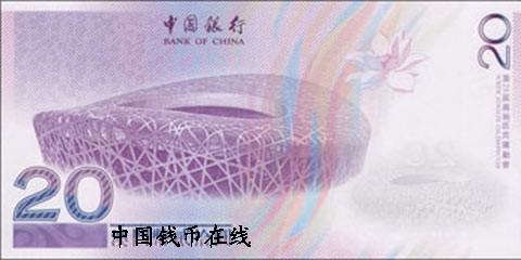 经国际奥委会和北京奥组委批准,并根据澳门特别行政区第5/2008号行政法规,中国银行澳门分行获准发行第29届奥林匹克运动会澳门币纪念钞,面值贰拾元,发行量400万张。