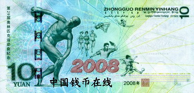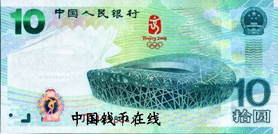 初初欣赏奥运纪念钞,一面是古希腊雕塑艺术的里程碑“掷铁饼者”,引领我们穿越历史隧道回到既往,这尊被誉为“体育运动之神”的雕像,描绘了投掷铁饼的一个典型瞬间动作,赞美人体的美和运动所饱含的生命力,代表着古希腊全盛时期的艺术家们不仅在艺术技巧上,同时也在艺术思想和表现力上质的飞跃。这尊雕像充满着连贯的运动感和节奏感,突破了艺术上时间和空间的局限性,传递了运动的意念,把人体的和谐、健美和青春的力量表达得淋漓尽致;另一面是北京奥运会主体育场“鸟巢”, 这座被誉为“第四代体育馆”的伟大建筑作品,见证的不仅仅是人类21世纪在建筑与人居环境领域的不懈追求,也见证着中国这个东方文明古国不断走向开放的历史进程,那是一个用树枝般的钢网把一个可容10万人的体育场编织成的一个温馨鸟巢,是用来孕育与呵护人类文明的摇篮。穿越千年相呼应,同为世界之奇观,作为欣赏者,我更愿意沉浸于奥运纪念钞充满着诗意的境界与酣畅淋漓的表达,------宁静的浅绿、庄重的淡灰、雅致的银白、氤氲的海蓝------一切,仿佛从心底流淌出来,如同一个远行者,历尽千年的文化苦旅,沉浸在对于世界两大奇观乃至它们背后伟大文明的抒写中,这是中国的货币设计者用心描绘的奥运天堂,无论是跟随着观赏角度改变而奇异跟迭的面额数字色彩还是标识的颜色和明暗随角度之变化亦或流光溢彩的全息面额数字“10”,所有美妙的变化源自内心的美好跃然钞上。