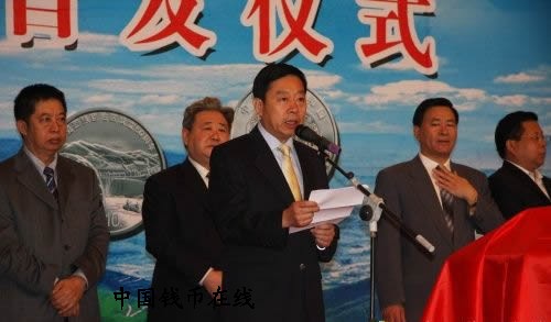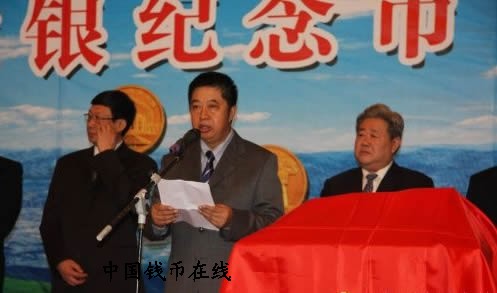 中国人民银行货币金银局局长叶英男宣读宁夏回族自治区成立50周年金银纪念币发行公告