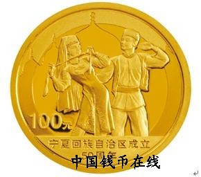 2008年9月12日,为纪念宁夏回族自治区成立50周年,中国人民行特别发行金银纪念币一套。该套纪念币共2枚,其中金币1枚、银币1枚,均为中华人民共和国法定货币。该币的发行丰富和完善了地方性的金币题材,通过币面精妙的设计体现出了宁夏独有的人文风情和自然风貌。一套金银币,几番宁夏情,让我们在这个“伊斯兰之乡”对古兰经的吟诵中,感受一种宁夏风味的币文化熏陶。 币之艺术――伊斯兰之乡,古兰经的吟唱 从金银币正面采用的图案来看,选用了最具融合性和包容性的“中华回乡文化园”作为图案。“中华回乡文化园”是国内唯一一处中国回族文化习俗的陈列展示场所,其建筑均借鉴伊斯兰经典建筑的造型,展现着浓郁的伊斯兰建筑风格,同时它展现的既是一种文化的特色,也是一种精神的融合。宁夏是我国著名的“伊斯兰之乡”,是中华文明的发祥地之一。回族是我国著名的歌舞民族,有着璀璨悠久的文化和艺术。宁夏地处中原文化与草原文化的过渡地带,是河套文化与丝绸之路的交融区,古老深远的黄河文化、特色鲜明的伊斯兰文化、独一无二的西夏文化、颇具特色的移民文化和浓郁粗旷的边塞文化共聚在这块神奇的土地上,从而为后人留下了许多珍贵的遗迹和探寻不尽的奥秘。中华回乡文化园的图案设计展示了宁夏这种丰富而独具魅力的历史传承和文化传承。