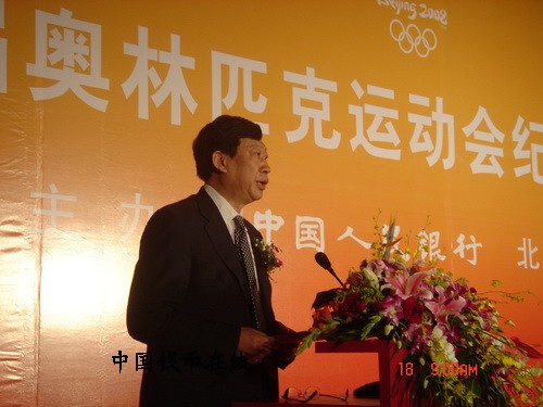 中国人民银行货币金银局局长叶英男在奥运币首发仪式上致词