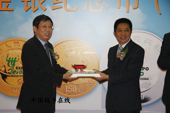 中国2010年上海世界博览会金银纪念币(第1组)首发式由中国人民银行办公厅副主任罗锐主持