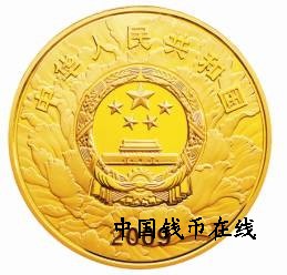 (二)5盎司圆形金质纪念币为精制币,含纯金5盎司,直径60毫米,面额2000元,成色99.9%,最大发行量600枚。