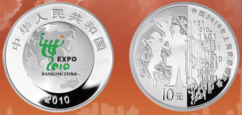 中国人民银行已于2009年6月10日发行了中国2010年上海世界博览会金银纪念币(第1组),该套纪念币的面世受到了广大收藏爱好者的青睐。随着2010年上海世界博览会开幕日期的日益临近,本次国际盛会的关注度将空前提升。中国人民银行定于2010年4月22日发行中国2010年上海世界博览会金银纪念币(第2组)一套,该套纪念币共4枚,其中金币2枚,银币2枚,均为中华人民共和国法定货币。