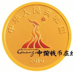 中国人民银行定于2010年5月31日发行第16届亚洲运动会金银纪念币(第2组)一套。该套纪念币共2枚,其中金币1枚,银币1枚,均为中华人民共和国法定货币。