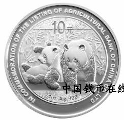 中国人民银行定于2010年7月15日发行中国农业银行股份有限公司上市熊猫加字金银纪念币一套。该套纪念币共2枚,其中金币1枚,银币1枚,均为中华人民共和国法定货币。