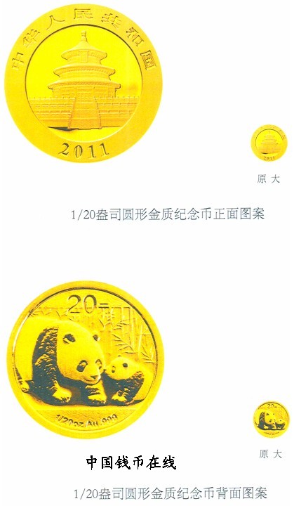 (一)1/20盎司圆形金质纪念币为普制币,含纯金1/20盎司,直径14毫米,面额20元,成色99.9%,最大发行量200000枚。