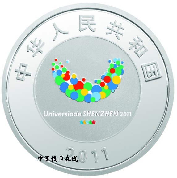 该套金银纪念币正面图案均为深圳第26届世界大学生夏季运动会会徽(局部彩色),并刊国名、年号。