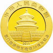 中国人民银行定于2011年11月21日发行厦门经济特区建设30周年熊猫加字金银纪念币一套
