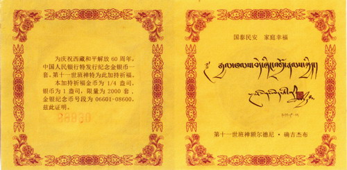 西藏和平解放60周年金银币(班禅开光加持版)正式发行