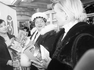 图为俄罗斯游客在选购“福娃” 朱晶摄