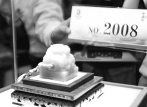 据了解,徽宝典藏版共制作2008方,每方5.6万元,其中编号为0001、2008的徽宝均不出售,编号为0002、0003、0004的徽宝均已被收藏者购买。下图为编号2008的奥运徽宝。