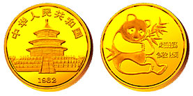 1982年中国熊猫纪念金币首次正式发行。借鉴于当时国际金银币的经验,中国应该推出一种题材相同,且每年连续发行的成套金币,中国人民银行决定采用世界闻名的中国大熊猫和北京天坛祈年殿作主题图案,当年熊猫金币发行1组4枚,规格分别为1盎司、1/2盎司、1/4盎司、1/10盎司。由于发行量在当时算比较大,系列产品也多,预计发行年限较长,考虑到法定货币的后期法偿等诸问题,有许多不同的意见和争论。为此,中国人民银行李葆华行长综合各方面意见,决定当年按计划发行熊猫金币,但是,币面暂不设货币面额。发行以后,再听取和搜集国内外各方面的反馈。从此,中国熊猫金币在世界开始闻名,并同时成为中国金币的看家产品。这套熊猫金币虽然没有面额,但是,至今世界各国钱币收藏界都视其为“正宗国家货币”,享有名门待遇。一览世界普制金币概貌:南非的福格林金币是1970年发行;加拿大的枫叶金币是1979年发行;美国的鹰洋金币是1986年发行;英国不列颠金币也是1986年发行;澳大利亚的鸿运金币是1987年发行;奥地利的音乐金币则是1989年发行,还有墨西哥的自由女神金币、新加坡的狮子金币等等……中国熊猫金币1982年发行应当说是靠前的。 同年,由中国名画家刘继卣所画的生肖狗制作的银币,首次获得世界硬币大奖赛“标准银币大奖”。此币由沈阳造币厂王福德、申宪章、李小川设计雕刻。