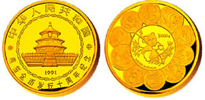 1991年为纪念中国熊猫金币发行10周年,中国人民银行发行中国20世纪最大金币——5公斤熊猫精制金币,仅10枚。 1992年中国古代科技发明发现第1组金银纪念币问世。22克航海造船精制银币,获得由德国《德意志钱币杂志》组织的当年欧洲销售最佳纪念币大奖赛“最佳纪念币奖”。此币由沈阳造币厂谷英斌设计雕刻。