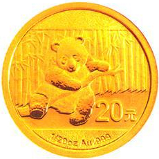 (一)1/20盎司圆形金质纪念币为普制币,含纯金1/20盎司,直径14毫米,面额20元,成色99.9%,最大发行量800000枚。