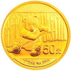 (二)1/10盎司圆形金质纪念币为普制币,含纯金1/10盎司,直径18毫米,面额50元,成色99.9%,最大发行量800000枚。