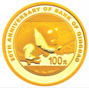 中国人民银行定于2016年11月1日发行青岛银行成立20周年熊猫加字金银纪念币一套2枚
