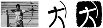该枚币主景为中国古代射箭。图案中的射箭体育造型,取之于甘肃敦煌石窟的第290窟壁画《太子较射图》,为北周时期作品,距今已有近1500年的历史。这幅作品场面宏伟,生动地表现了当时贵族生活的场景,人物神情专注,服饰华贵,动作规范。 在距今三千多年以前的西周时期,弓箭已经不仅仅作为军事活动中的重要器具。它逐渐由为人才选拔的手段演变成射箭运动,这就是中国当时流行的一种体育活动——礼射,其的规则是,射中箭靶箭数少的人要依礼饮酒。 金币的背面图案设计有4个特点:1、两种体育人物造型,古代与现代对比;2、具像写实与装饰抽象对比;3、立体饱满浮雕造型与平面浅平图案对比;4、币面构图主体人物造型横与竖对比。以上繁多设计元素,最后都统一到中国历史悠久的传统瓦当(详见注①)造型上来,并且币面主体与瓦当边缘适当重叠,使币面生动活泼。该背面图案民族韵味浓郁,生动地表现了中国悠久的体育历史文化,颇具中国特色。