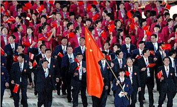 在开幕式上,当亚洲第一体育强国--中国代表团步入哈里发体育场的时候,现场响起了热烈的掌声,观众无一不被中国体育健儿的英姿所倾倒,并祝愿他们在比赛中取得优异的成绩。中国亚运代表团团长刘鹏表示,亚运会将是奥运会前最好的一次练兵机会,并对中国体育的弱势项目提出锻炼队伍、向对手学习的要求。