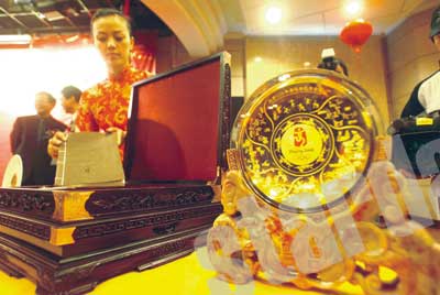 北京娱乐信报消息:15日,经北京奥组委授权,中国金币总公司发行的奥运金盘正式面市。