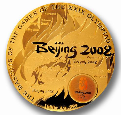 另外一款重量为5千克,发行量仅29枚的纯金纪念章,堪称惊世杰作。这枚纪念章无论在奥运特许产品的历史上,还是在世界铸币行业的历史上,都是绝无仅有的。其发行价格为108万元,但因为其特殊的纪念和收藏意义,目前的市场价格已经上涨到了200万元左右。