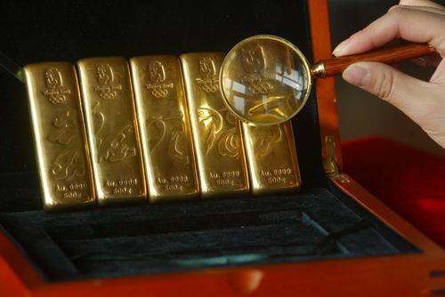 北京奥运金:北京奥组委批准发行的奥运题材金条,是传统金条与奥运特许商品的完美结合,世界第一套奥运题材的纪念金条。自2005年发行第一组以来,已经连续发行了三组,价格一路上扬,从第一组的最低零售价135元/克,到第二组的最低零售价156元/克,到现在第三组的最低零售价188元/克,已经升值了将近40%。据我了解,目前第一组在收藏市场上的价格已经达到了300多元/克,升值了150%。这其中的主要原因就是“北京奥运金”已成为广大奥运收藏者和投资者眼中的“金品”。随着市场收藏热一年高过一年,集齐五组金条的难度越来越大,意味着全套金条的升值空间越来越大,对投资者极具吸引力。