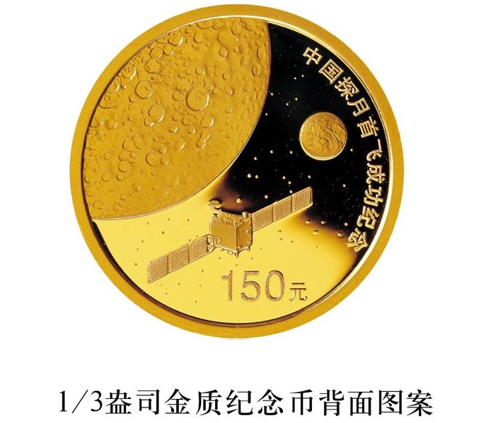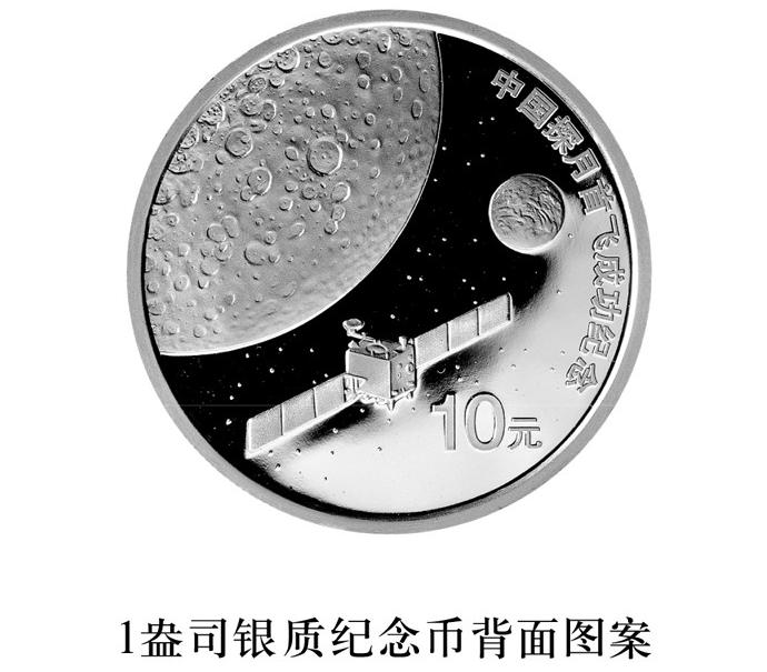 该套金银纪念币背面图案均为中国探月卫星、月球及地球造型图,并刊“中国探月首飞成功纪念”字样及面额。