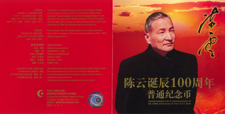 陈云诞辰100周年.卡币