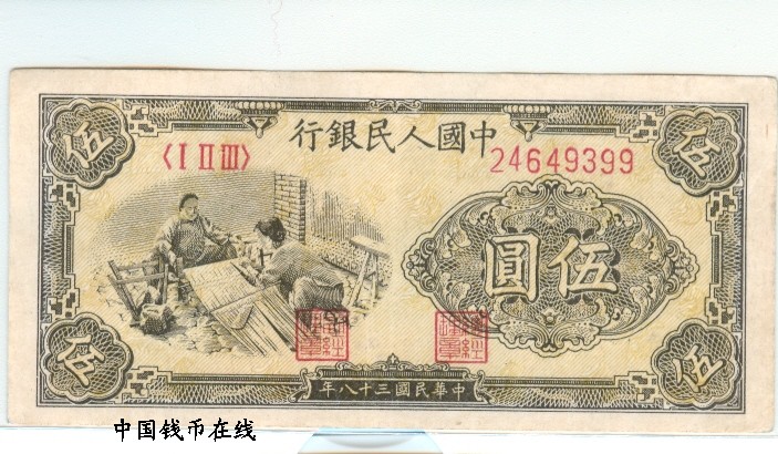 第一版人民币5元织布