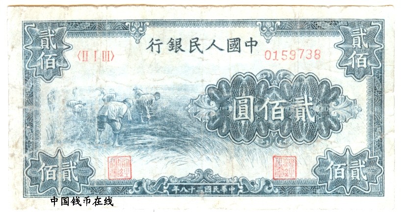 第一版人民币200元割稻