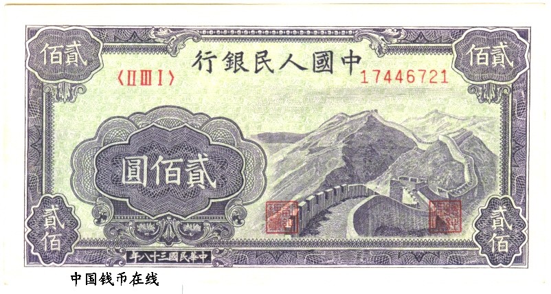 第一版人民币200圆长城
