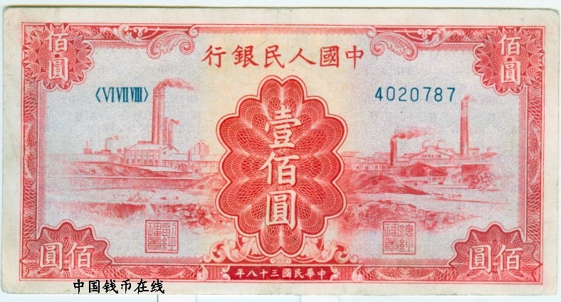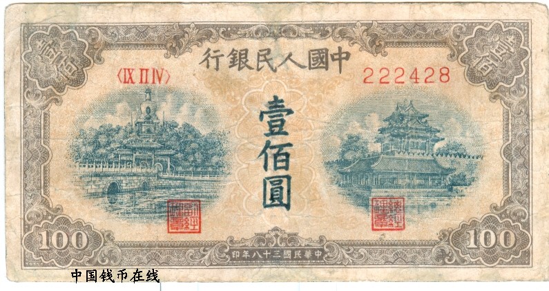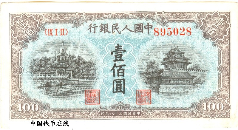 第一版人民币100元红工