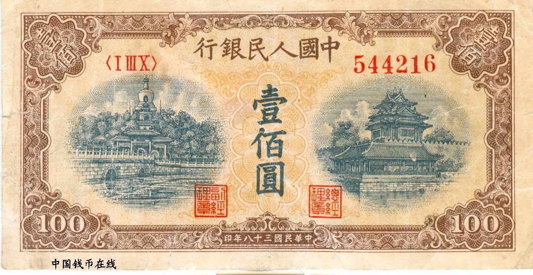 第一版人民币100黄北海