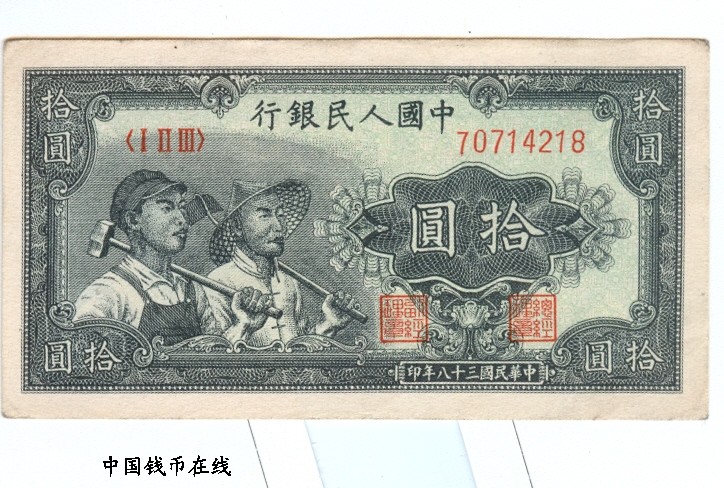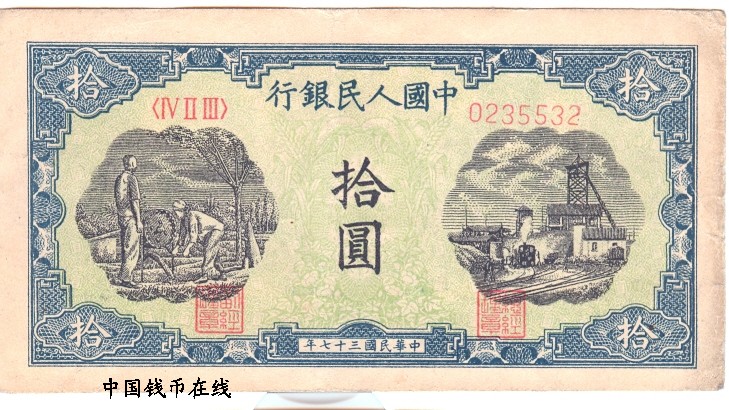 第一版人民币10元灌溉
