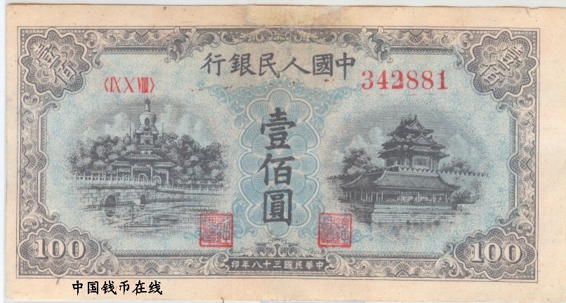 第一版人民币100蓝北海