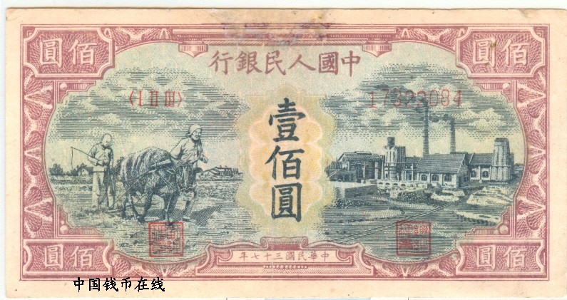推荐商品 第一版人民币100圆耕地工