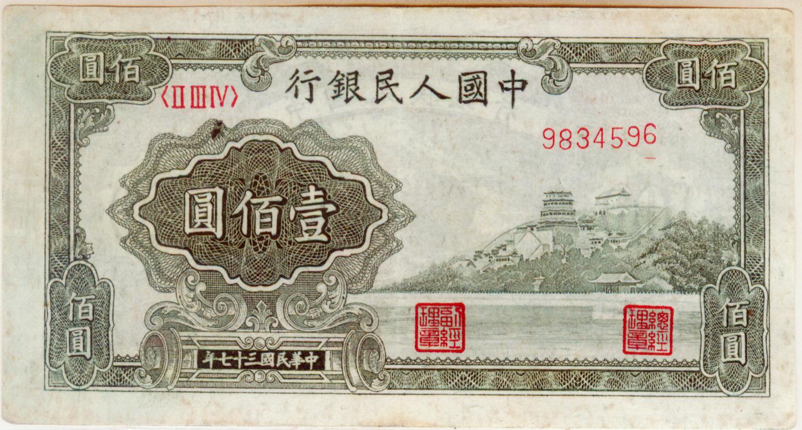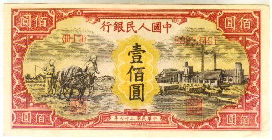 第一版人民币红100红工