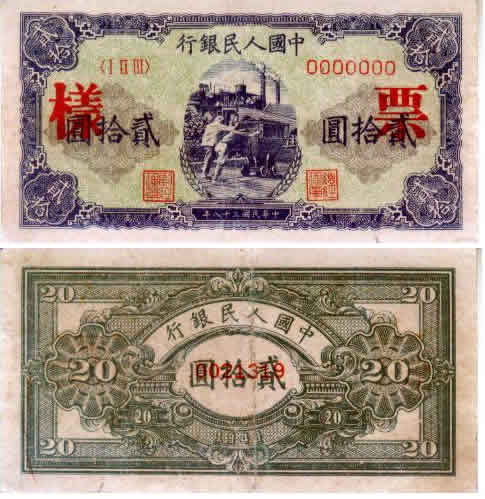 第一版人民币20元推车