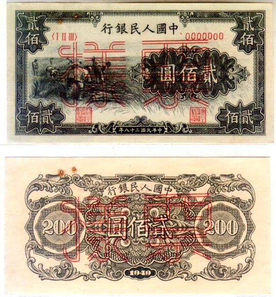第一版人民币200元割稻