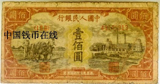 第一版人民币100圆牛耕