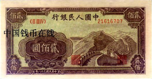 第一版人民币红二百圆