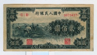 第一版人民币200元割稻