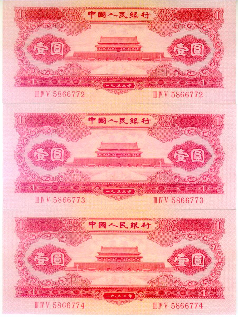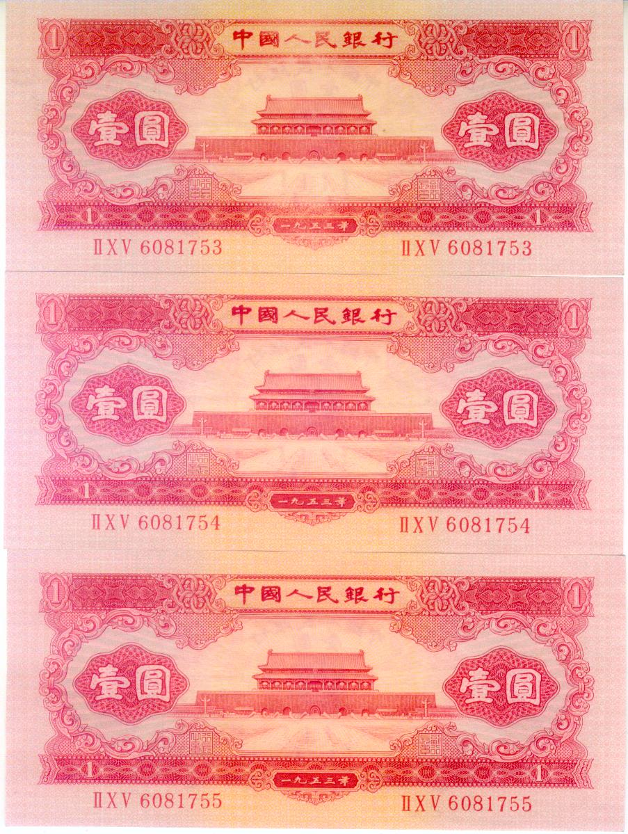 第二版人民币红1圆3张