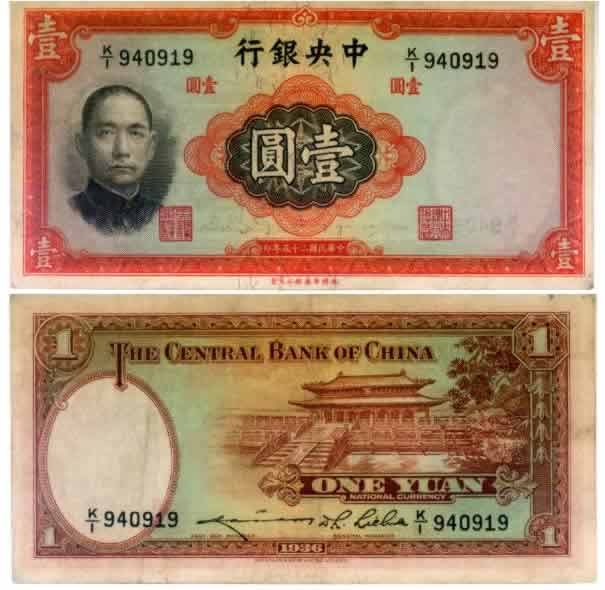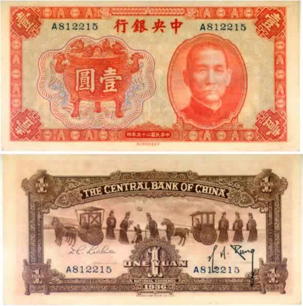 中央法币25年中华版1圆