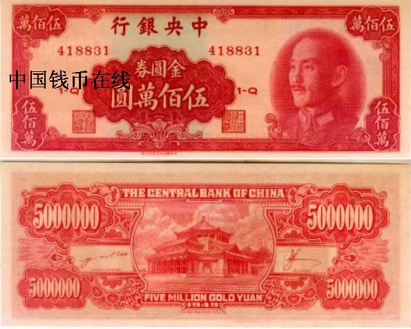 中央银行金圆券500万全